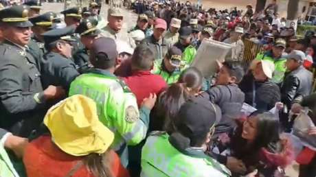 El 9 de enero pasado, ante lo que denunciaban como un golpe de Estado, una multitud tomó el aeropuerto internacional de la ciudad de Juliaca. La PNP respondió entonces con fuerza letal, dejando 18 civiles muertos a balazos.«¡Asesinos!», gritaron este miércoles los manifestantes congregados en la Plaza de Armas de Juliaca, que portaban carteles en rechazo a las autoridades.Citado por el diario La República, uno de los familiares dijo que exigen la instauración de «un gobierno de transición que nos garantice a nosotros, los deudos, la justicia que buscamos«.
