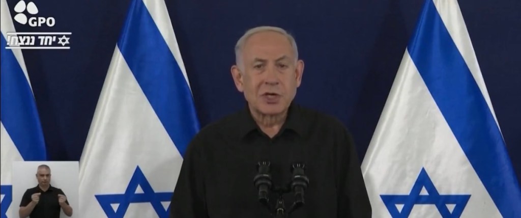 En su alocución televisada, el jefe de Gobierno declaró que la decisión de expandir la operación terrestre fue tomada por unanimidad y calificó de «hipócritas» a aquellos que acusan a las Fuerzas de Defensa de Israel de crímenes de guerra.