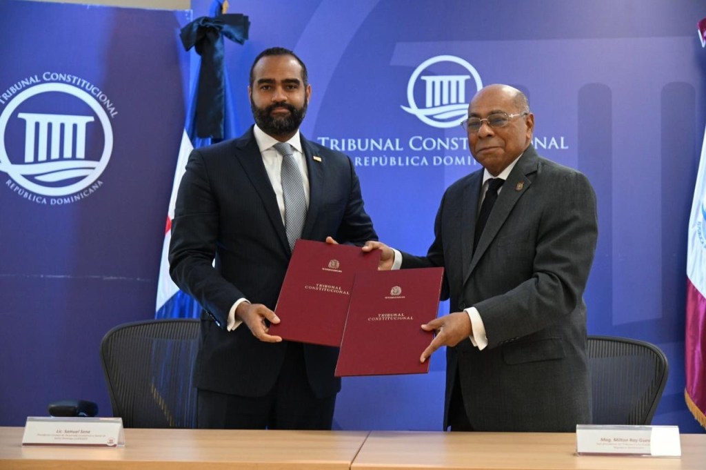 El convenio, firmado por el magistrado presidente del TC, Dr. Milton Ray Guevara, y el presidente del CODESSD, Samuel Sena, establece la cooperación mutua en la realización de proyectos formativos