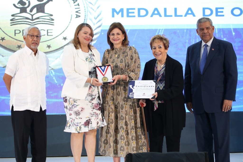 La vicemandataria, junto a los ministros de Educación, Ángel Hernández, y de Administración Pública, Darío Castillo Lugo, entregaron doce medallas, cuatro de ellas de bronce, seis de plata y dos de oro, además de un reconocimiento especial.