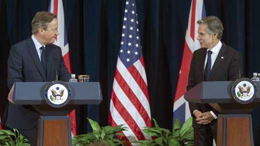 David Cameron, ministro británico de Exteriores, habló sobre los fondos que destinó su país para la misión en Haití durante una rueda de prensa junto al jefe de la diplomacia estadounidense, Antony Blinken.