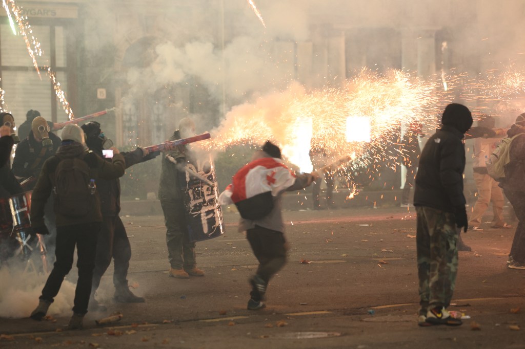 Aunque menos numerosos que en veladas anteriores, miles de manifestantes se concentraron nuevamente el martes por la noche en Tiflis y lanzaron fuegos de artificio contra el Parlamento y la policía, observaron periodistas de la AFP.