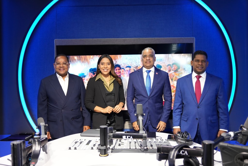 El ministro Joel Santos junto a los panelistas del programa La Mañana con Dary, Yessy Pérez, Dary Terrero y Leonardo Jáquez