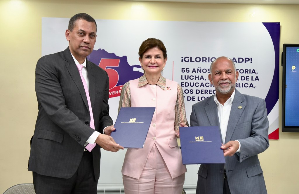Santo Domingo.– En un acto encabezado por la vicepresidenta de la República Raquel Peña, el Instituto Dominicano de las Telecomunicaciones (INDOTEL) y la Asociación Dominicana de Profesores (ADP) firmaron un convenio de colaboración interinstitucional mediante el cual se otorga 1,444 becas del programa Talento Digital RD a maestros para fortalecer sus competencias digitales y elevar la calidad educativa con el uso de la tecnología en las aulas.